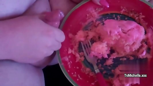 Girly-girl tgirl jacks jizm after pussydrilling