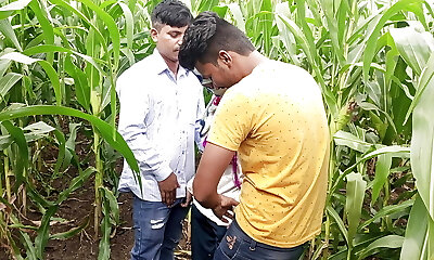 Indian Pooja Ladyboy Boyfrends Took A New Friends To Pooja Corn Field Today And 3 Frends Had A Lot Of Fun In Sex