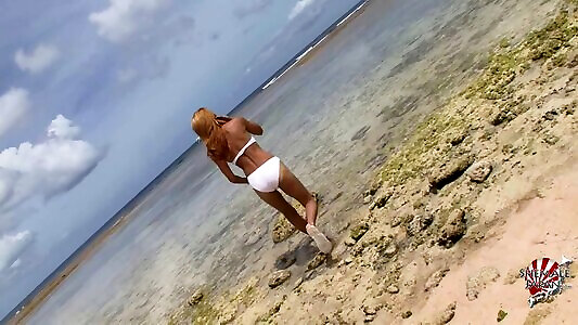 потрясающая азиатская трансексуалка идеально выглядит в молочном бикини